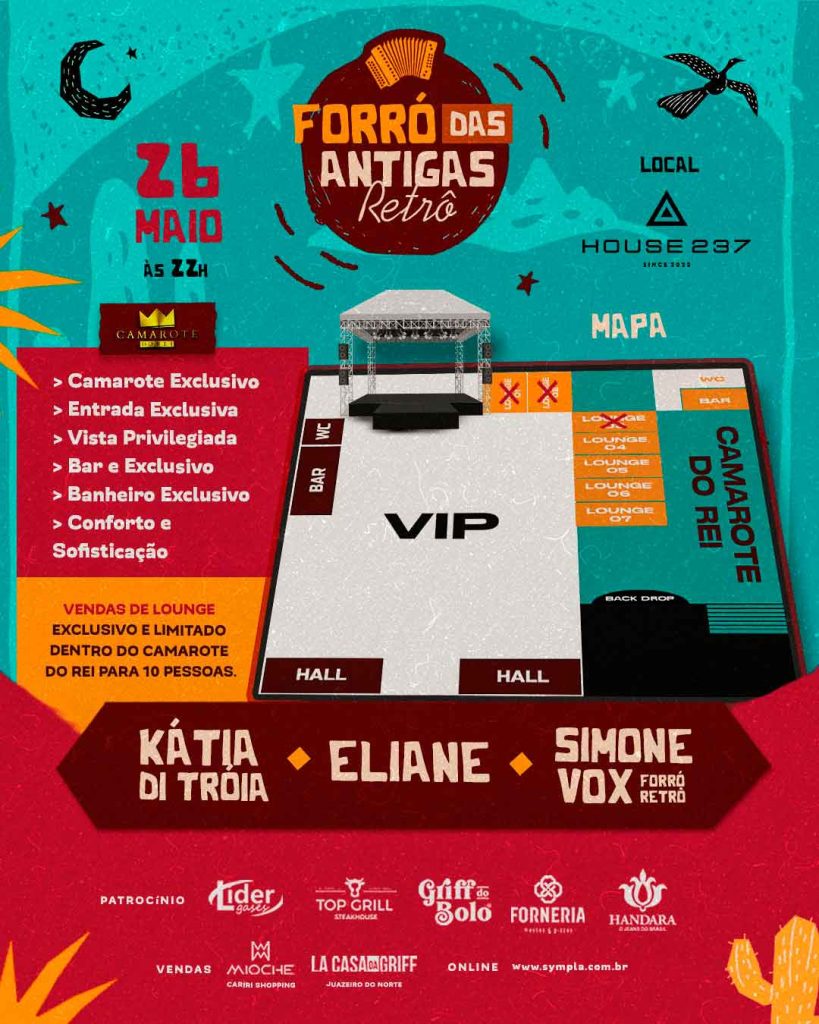 A casa de shows House 237 está preparando um evento marcante para o próximo dia 26 de maio, uma festa com o melhor do forró das antigas. O evento contará com apresentações de Simone Vox, Kátia de Tróia e da rainha do forró, Eliane.