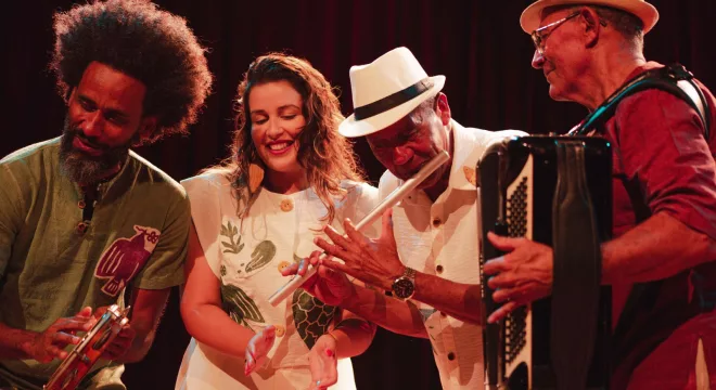 Nesta terça-feira (23), é a vez do Crato receber a dupla Fernando César e Tiago Tunes, do Distrito Federal. O show une o violão de sete cordas ao premiado bandolim, instrumentos tradicionais do choro e do samba, proporcionando uma experiência sonora refinada e envolvente.