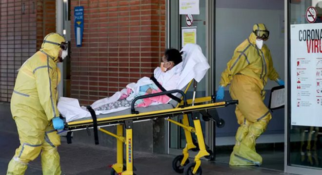 Pacientes continuam a chegar em levas aos hospitais espanhóis, cujas equipes enfrentam a falta de equipamentos de proteção, como máscaras.