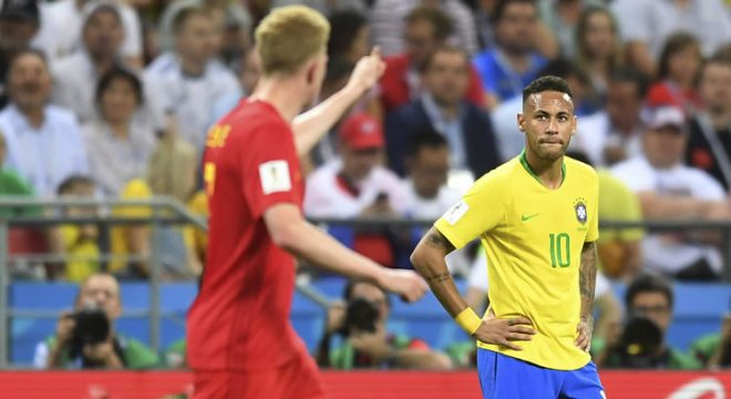 Neymar reage após o gol de De Bruyne - 06/07/2018 (Michael Regan/FIFA)
