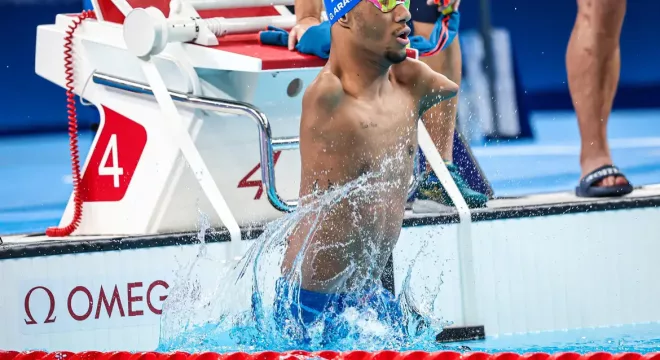 Outro brasileiro com chances de medalha é o Phelipe Rodrigues. O nadador vai buscar seu nono pódio em Paralimpíadas. Ele avançou na terceira posição dos 50m livre S10 (classe para atletas com poucas limitações físico-motoras), prova em que foi bronze no último Mundial e nos Jogos de Tóquio.