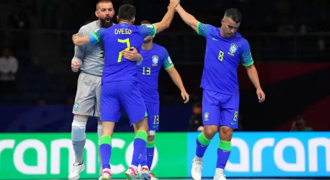 Foi no sufoco. Com três gols de Dyego, o Brasil venceu a Ucrânia, nesta quarta-feira (2), por 3 a 2 na semifinal e avançou à final da Copa do Mundo de Futsal 2024.