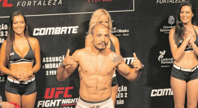 Na pesagem, ontem, antes da luta de hoje contra o também brasileiro Marlon Moraes, ele surpreendeu ao bater a meta e com condição física invejável.