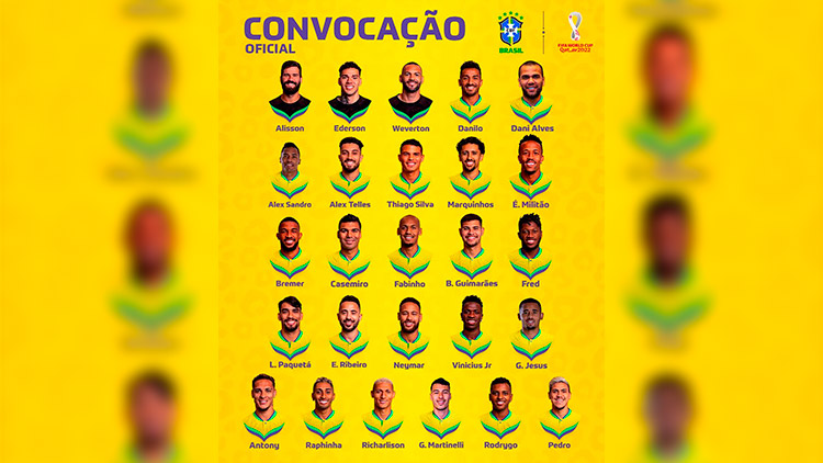 A seleção que defenderá o Brasil na Copa do Mundo do Catar, a partir do próximo dia 20, está convocada. A relação com os 26 jogadores que buscarão o hexacampeonato mundial foi divulgada pelo técnico Tite nesta segunda-feira (7), no auditório da Confederação Brasileira de Futebol (CBF), na Barra da Tijuca, zona oeste do Rio de Janeiro.