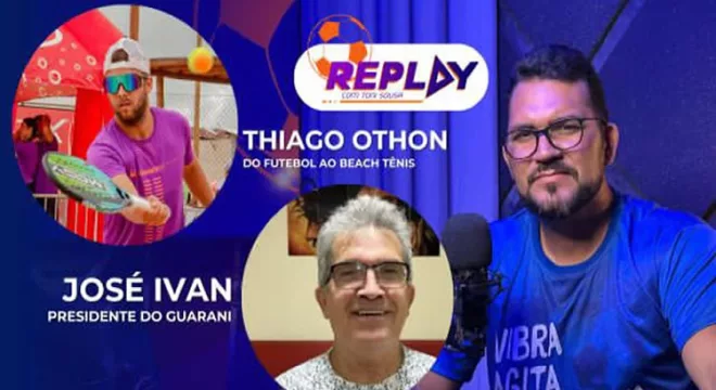 O programa Replay, desta segunda-feira(23), teve a participação do presidente do Guarani, Zé Ivan, e do ex-jogador de Icasa, Barbalha, Vitória-BA, Santo André-SP entre outros, Thiago Othon. Thiago, atualmente, é instrutor de beach tênis, modalidade esportiva que anda fazendo grande sucesso no cariri.