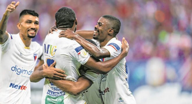 Jogadores do Fortaleza comemoram gol da vitória sobre o Bahia (Camila Lima/Diário do Nordeste)