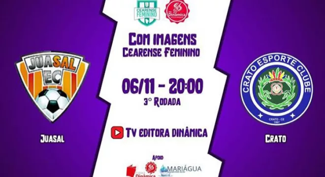 A bola rola, nesta quarta-feira (6), pelo Campeonato Cearense Feminino de Futebol. No estádio Lírio Callou, O Inaldão, em Barbalha, ocorrerá o jogo Juasal x Crato, às 20h, pela 4ª rodada da competição.
