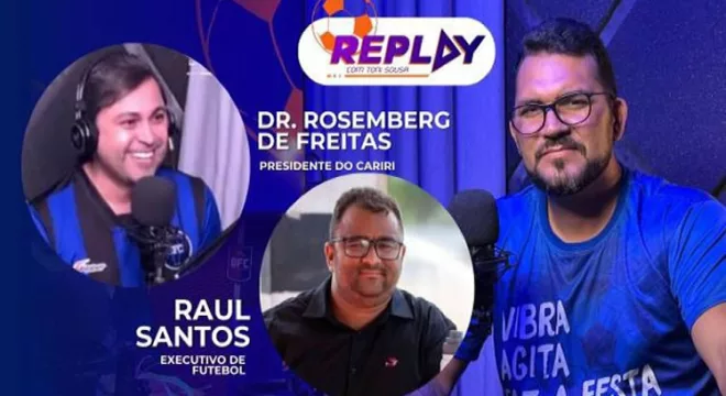 O programa Replay, desta segunda-feira (16), foi cheio de novidades. O presidente do Cariri, Dr. Rosemberg de Freitas, falou sobre o planejamento do time para 2025, confirmou Adelmo Soares como treinador e deu detalhes sobre a construção do centro de treinamentos e o novo sócio torcedor que está em elaboração. Quem também participou do programa foi o executivo de futebol, Raul Santos. Ele falou sobre a saída do Ferroviário e as possibilidades de futuro.