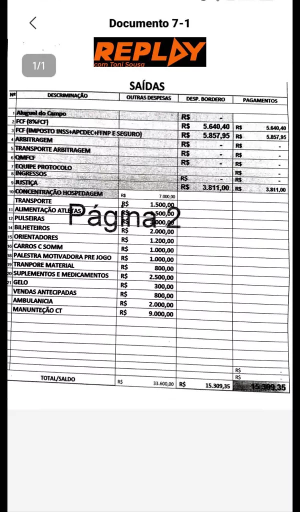 Veja no vídeo as despesas apontadas pelo clube e apresentadas na prestação de contas junto a FCF.