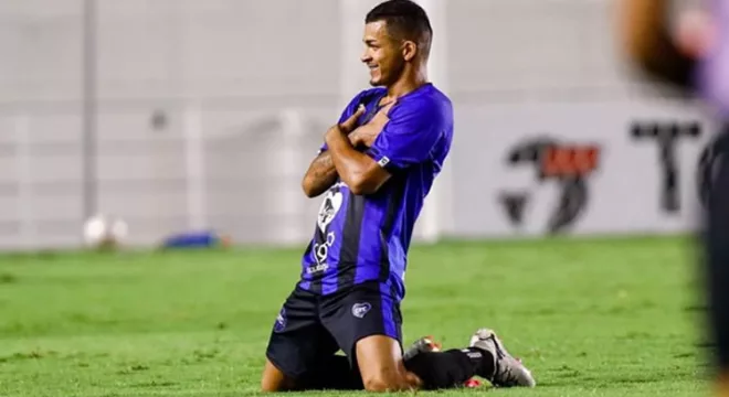 Tiaguinho comemorando um dos dois gols marcados contra o Icasa (Foto: Segundo Filmagens )