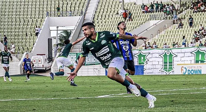 Cláudio Jr, o iluminado, comemora o gol icasiano (Foto: Heron Targino)
