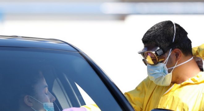 Testes rápidos por meio de centros de coleta drive-thru tem sido adotados em outros países, como os EUA - Foto: AFP