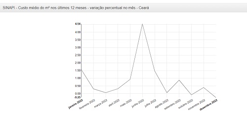 O índice da Construção Civil (Sinapi) fechou o ano de 2022 com alta de 10,62% no Ceará. De acordo com o Instituto Brasileiro de Geografia e Estatística (IBGE), o número representa uma queda de 7,38 pontos percentuais comparado ao ano de 2021, que registrou 18,0%, e pouco abaixo de 2020, com 10,93%.
