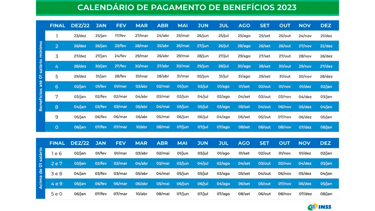 O Instituto Nacional do Seguro Social (INSS) divulgou, nesta quinta-feira (8), o calendário de pagamentos de 2023, que contempla mais de 37 milhões de aposentados, pensionistas e outros segurados.