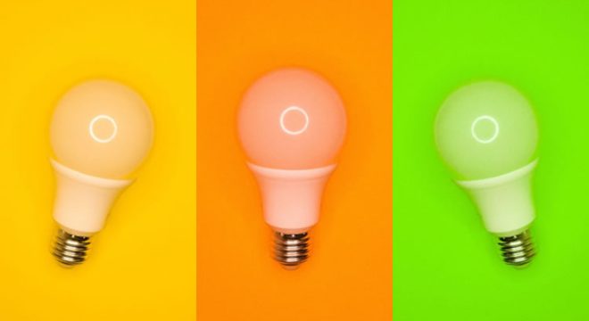 Lâmpadas em fundos amarelos, laranja e verdes. (Foto: Reprodução)