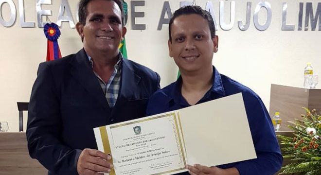 O administrador Roberto Helder de Araújo Sales, 37 anos, é o mais novo “filho adotivo de Brejo Santo”. Ele recebeu o titulo de cidadania brejo-santense em sessão solene no Plenário Napoleão de Araújo Lima da Câmara Municipal de vereadores de Brejo Santo.