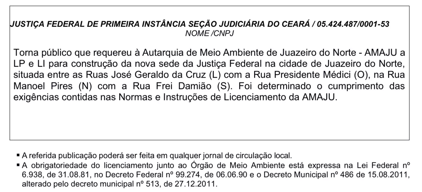 Justiça Federal de Primeira Instância seção judiciária do Ceará