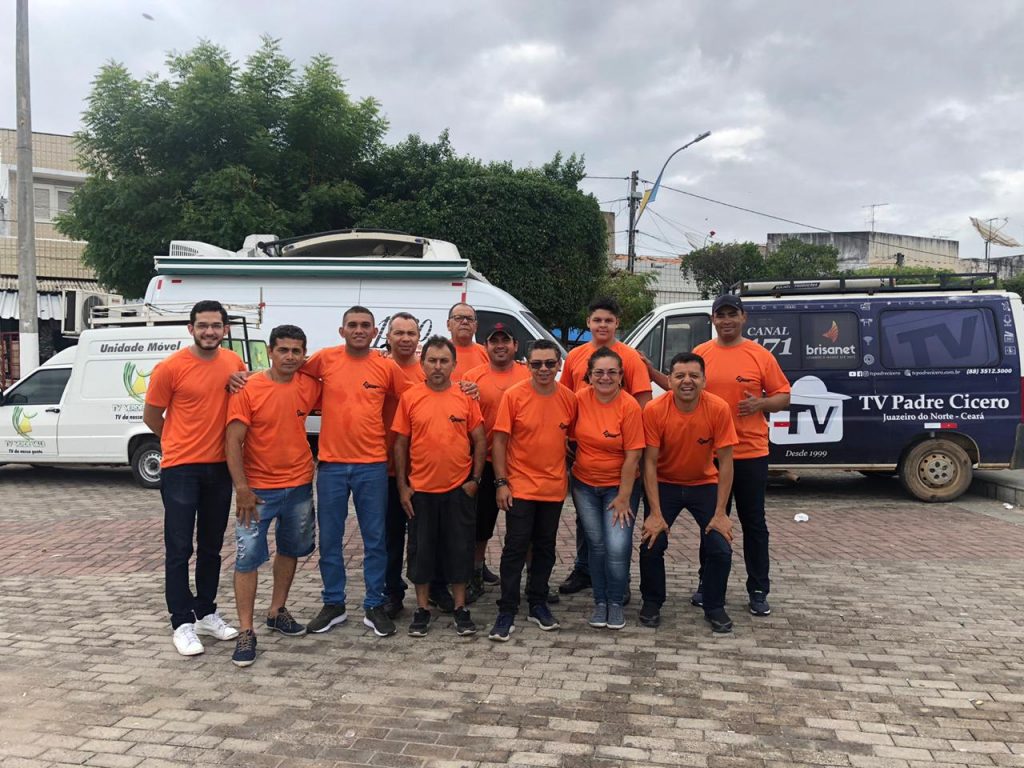 Equipe da TV Padre Cícero que todo dia 20 acorda às 03:00h da madrugada para a transmissão ao VIVO para todo Brasil e o mundo (Foto: Reprodução)