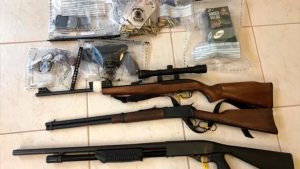 As imagens do arsenal, que contava com submetralhadora, fuzil e rifles com lunetas, foram divulgadas pela PF.