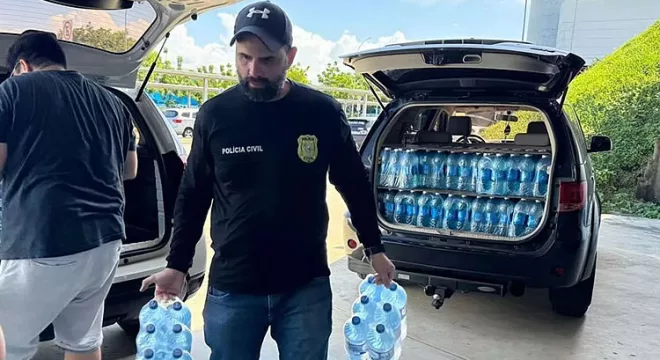 Polícia Civil arrecada mais de 50 mil litros de água mineral para vítimas de enchentes no RS