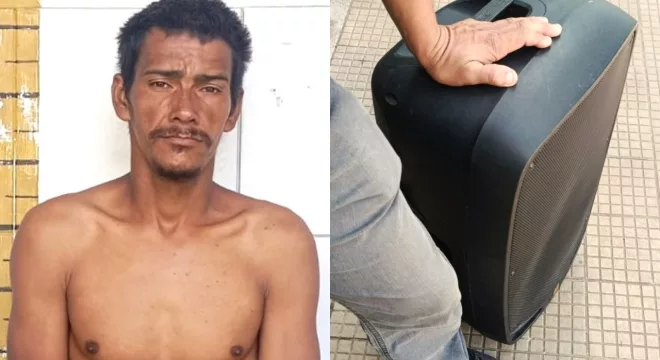Na conversa com Maciel Ferreira Ludugério, de 36 anos, residente no Sítio Lagoa em Barbalha, este admitiu ter furtado uma caixa de som da Escola Mozart Cardoso de Alencar que funciona no bairro Lagoa Seca. O arrombamento aconteceu domingo (22) e ele disse ter vendido por R$ 200,00. Jozimar buscou apoio dos colegas e foram até um box apontado pelo acusado.
