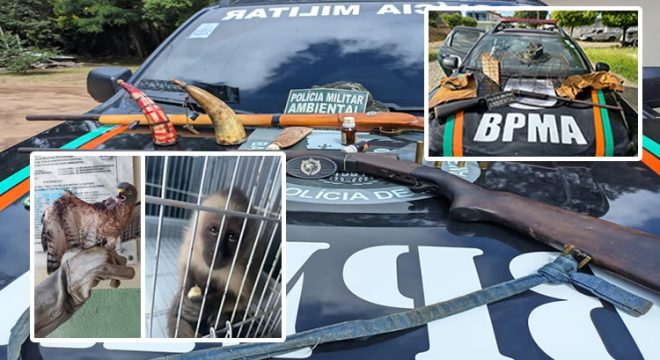 Ações de militares da Polícia Ambiental resultaram nas capturas de uma ave e um animal silvestre no Cariri, além das apreensões de armas de caçadores. Por volta das 07h30min uma patrulha com o Sargento Souza e os Soldados Barbosa e Mariana esteve na empresa FERCOMP que funciona na Avenida Padre Cícero (Salesianos) em Juazeiro. Ali funcionários encontraram um Gavião com a asa fraturada e acionaram a polícia para o resgate.