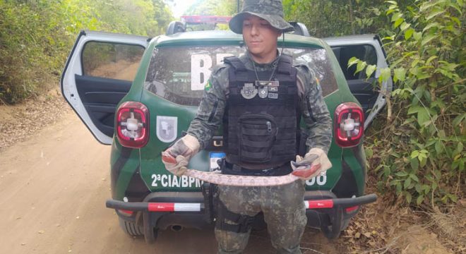 Os policiais promoveram a captura do animal silvestre de uma forma segura, utilizando equipamentos e meios adequados. A cobra Jiboia pertence a uma família de serpentes não peçonhentas, de médio a grande porte e podem medir até 4 metros de comprimento. Após a captura, foi observado que o réptil não se encontrava com ferimentos, sendo, logo em seguida, devolvido ao seu habitat natural de maneira segura.