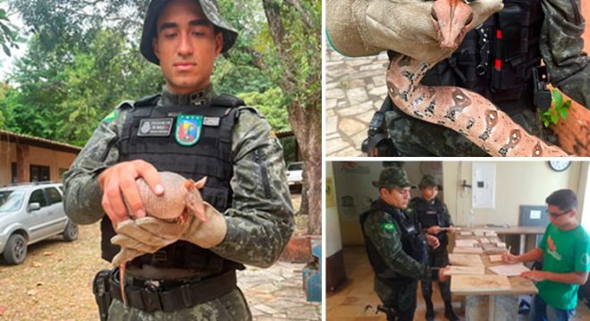 Ações promovidas nesta segunda-feira por militares da Polícia do Meio Ambiente resultaram no resgate de animais silvestres em Juazeiro e recolhimento de fósseis em Nova Olinda. Por volta das 14 horas uma patrulha com o Cabo Gomes e os Soldados Saulo e Mariana resgataram um Tatu-Galinha (Dasypus novemcinctus) na Rua Engenheiro Tiago Nascimento (Bairro Leandro Bezerra) em Juazeiro. O animal foi levado para triagem na ONG BiodiverSe antes da devolução à natureza.