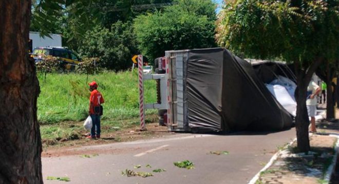 Carreta tombou numa via ao lado da BR-116 em Milagres. Foto:Reprodução