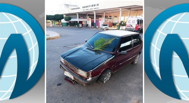 Fiat atingiu motos e feriu duas pessoas em frente a um bar na Rodoviária de Várzea Alegre (Foto: Reprodução)