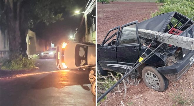 Carro tombou no bairro Betolandia em Juazeiro e outro bateu num poste em Mauriti. Fotos: Reprodução