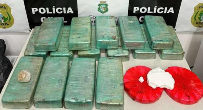 De acordo com a PCCE, eles foram abordados em um veículo após saírem de um imóvel. Durante a ação policial, o casal foi flagrado com quatro tabletes de crack, com mais de 4 kg, e duas embalagens cilíndricas de cocaína, de 1 kg. Os entorpecentes estavam dentro de uma bolsa no veículo.