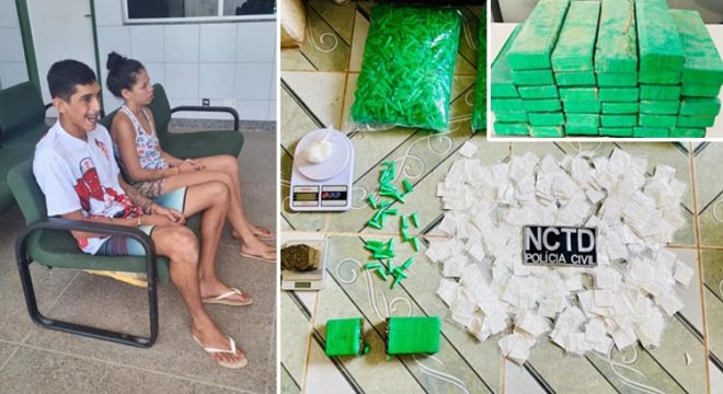 Joel e Gleicianne foram presos em Crato com muita maconha e pinos de cocaína. Fotos: Reprodução