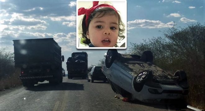 Mariana, de 2 anos, morreu no capotamento de um carro dirigido pelo pai e sua mãe encontra-se em estado grave no HRC em Juazeiro. (Foto: Reprodução/Redes Sociais)