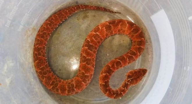 Após ser resgatada, a cobra foi encaminhada à ONG Biodiverse.