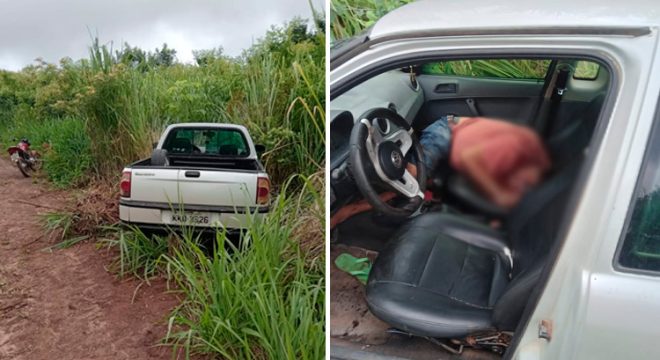 Corpo foi encontrado no banco do passageiro de uma Saveiro branca. Fotos: Reprodução