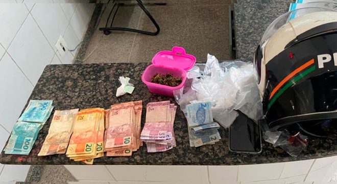 Os militares o abordaram e ele afirmou que estava comprando maconha para usar. Ao baterem à porta da residência, localizada no Bairro Alto da Penha, a moradora do imóvel, Juliene Tavares de Araújo, de 26 anos, atendeu e acabou sendo flagrada pelos policiais em posse de 14 gramas de maconha, oito de cocaína, um cigarro de maconha, um iPhone, diversos sacos de um possível armazenamento de drogas e uma quantia de mil e seiscentos reais.