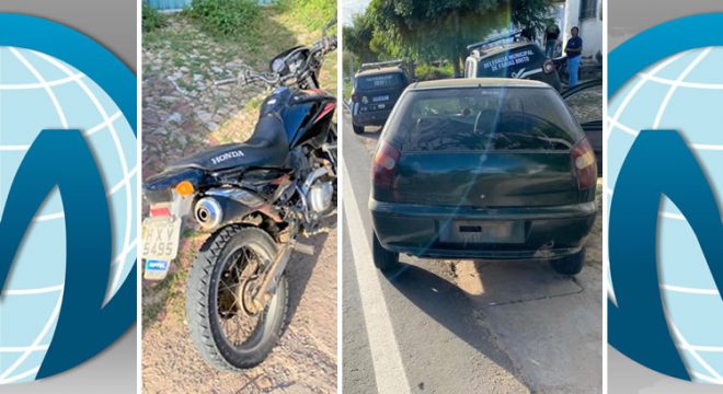 Moto e um dos carros recuperados em Farias Brito (Foto: Reprodução)