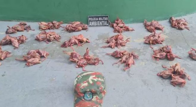 A Polícia Militar informou que foi acionada por meio de uma denúncia feita à Coordenadoria de Operações Integradas de Segurança (Ciops). Ao chegar no local, a equipe da 3ª Companhia do Batalhão de Polícia de Meio Ambiente (3ª Cia/BPMA) encontrou os animais e dois homens de 51 e 44 anos.