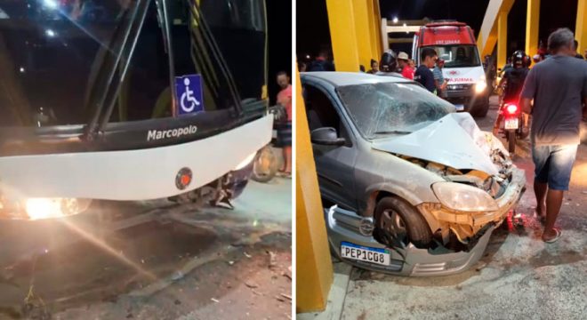 Uma colisão envolvendo um carro de passeio e um ônibus aconteceu por volta das 18h30 desta segunda-feira (19), na ponte Piquet Carneiro, em Icó.