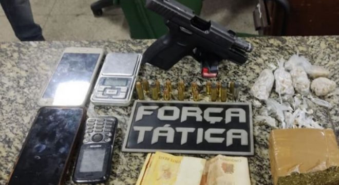 Com os suspeitos, foram apreendidas uma pistola calibre 380 com 11 munições do mesmo calibre, bem como 37 gramas de crack e 188 gramas de maconha. Na unidade policial, foi feito procedimento com base no art. 33 da Lei de Drogas e artigo 12 do Estatuto do Desarmamento.