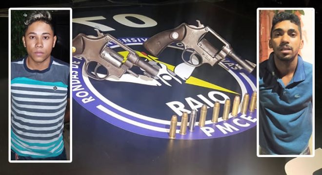 Os jovens Geferson Rodrigues dos Santos, de 23, residente na Rua José Magalhães Landim (Frei Damião) e Camilo Regis Silva Ribeiro, de 25 anos, que mora na Rua José de Alencar (João Cabral) estavam com dois revólveres calibres 38 e um total de 12 munições intactas. Foi apreendida ainda a moto Honda CG 125 Fan KS de cor preta e placa NUM-8049 e a dupla com as armas apresentada ao Delegado Victor Timbó na Regional de Policia Civil. Camilo já responde por assaltos e tráfico de drogas.
