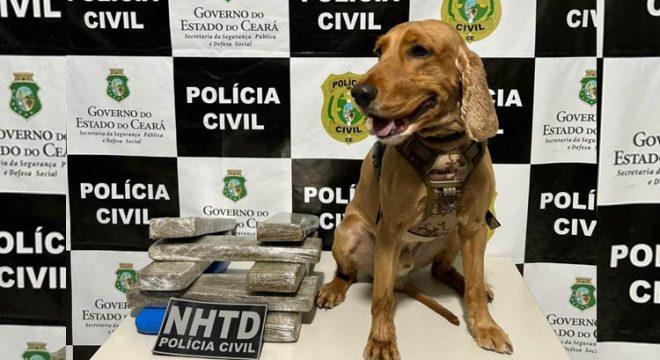 Nova ação da Polícia Civil com a ajuda do cão farejador, resultou na prisão de um jovem e muita maconha proveniente de São Paulo. O flagrante aconteceu na madrugada desta quarta-feira quando os investigadores prenderam José Lusdênio Dedes Alves, de 21 anos, residente no Sítio São Benedito em Milagres. Num ônibus da linha São Paulo/Mauriti, ele trazia quase 6 Kg de entorpecentes quando foi preso na BR-116 em Brejo Santo.