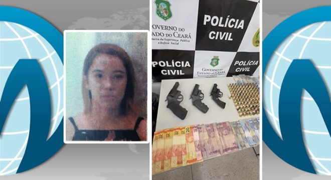 Garota de 23 anos presa em Juazeiro com três revólveres, muita munição e dinheiro