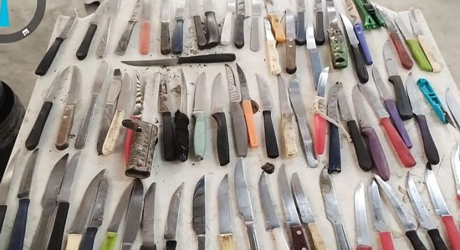Um levantamento feito pela Guarda Civil Metropolitana de Juazeiro demonstra a grande quantidade de armas brancas apreendidas em Juazeiro