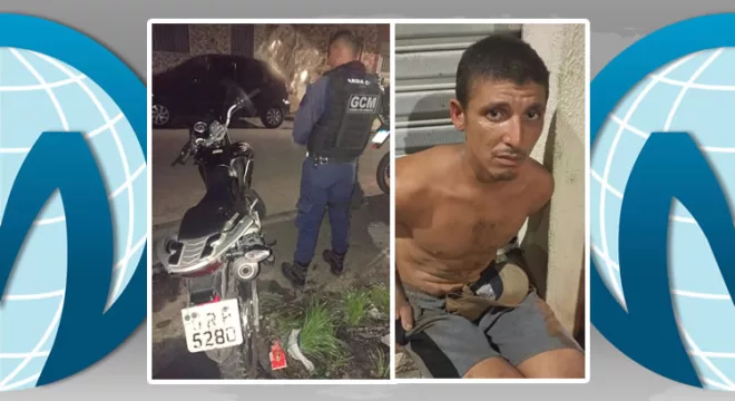 Moto furtada no Franciscanos e recuperada pela GCM e Erlanio foi preso furtando fios (Foto: Reprodução)