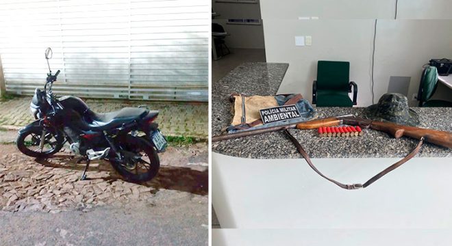 Moto recuperada por Guardas Municipais em Juazeiro e arma apreendida por militares da PM Ambiental em Araripe. Foto: Reprodução