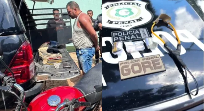 Um homem foi preso na manhã desta segunda-feira sob acusação de arremessar drogas para o interior da Penitenciária de Juazeiro se utilizando de uma baladeira. Foi por volta das 9 horas perto da Guarita 7 na lateral da Ala J do setor que custodia internos vinculados à facção criminosa Comando Vermelho (CV). Ali estava o gesseiro Eliseu Barros Neto, de 45 anos, residente no bairro Santa Tereza, com uma baladeira e embalagens contento maconha, comprimidos psicotrópicos e ainda quis fugir na moto.