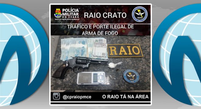 Por volta das 18h deste sábado (8), uma equipe do BPRaio efetuou a prisão de Felipe Soares Batista, no bairro Vila Alta, município de Crato. O suspeito foi indiciado por porte ilegal de arma de fogo e tráfico de drogas.