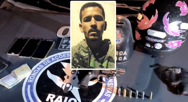 Tiago foi preso em Barbalha após uma série de assaltos com dinheiro e celulares recuperados e sua arma apreendida (Foto: Reprodução)